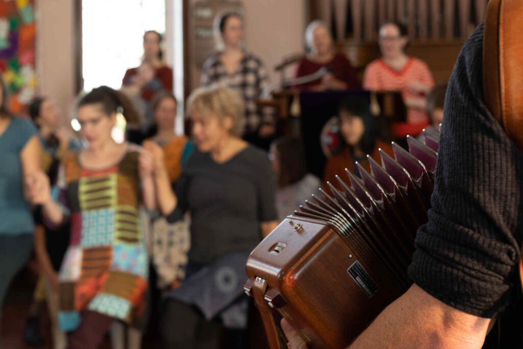 Nous essayons de cultiver une attitude d’humilité, de curiosité et de respect pour les origines culturelles des chansons que nous chantons. Il est important pour nous de rechercher le plus que possible le contexte des chants, et nous souhaitons le plus souvent possible développer des liens directs avec des porteurs de tradition. Nous prenons soin de l’utilisation prévue des chansons que nous enseignons et faisons de notre mieux pour éviter de partager du matériel considéré comme inapproprié pour un usage public par les communautés dont les chansons sont originaires. Nos réflexions sur cette question continuent d’évoluer !