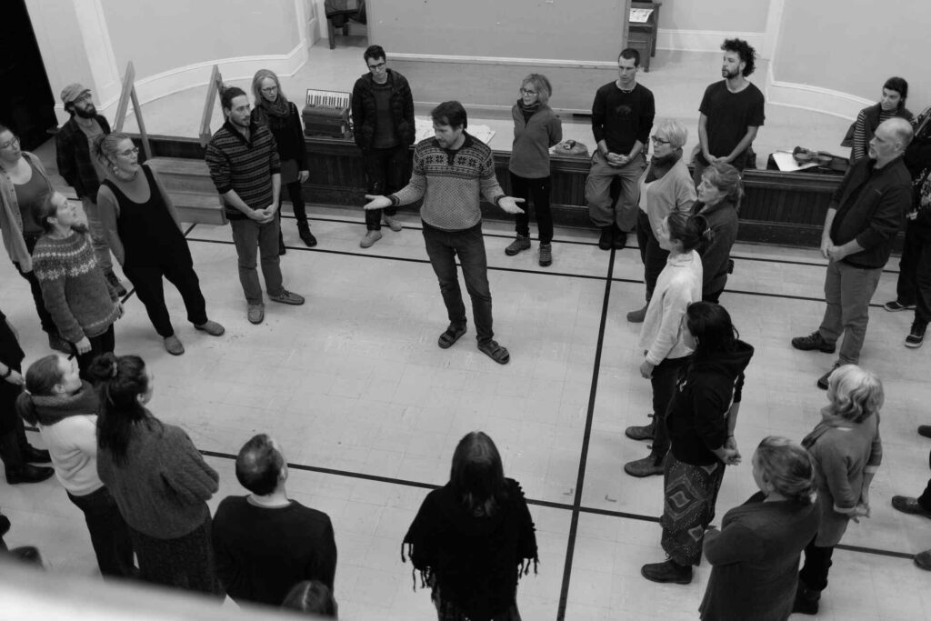En 2014, Nicholas Williams a commencé à offrir des ateliers de chant dans son village de Waterville. Depuis, Les Voix du Village sont passées d’un petit groupe d’amis à une grande communauté de chant rassemblant plus de 200 participants aux ateliers hebdomadaires à Sherbrooke et à Waterville.